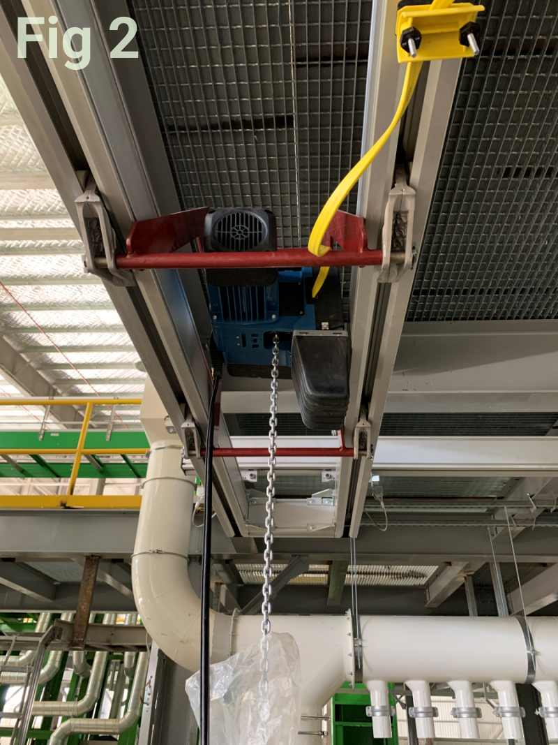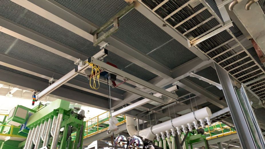 Another solution to meet the required hoisting system’s hook path or hook travel in a spatially constrained area—with a building height of only 4.6m to achieve a lifting height of 4m—is our Lightweight Aluminium Rail Track System paired with a customized hoist trolley.