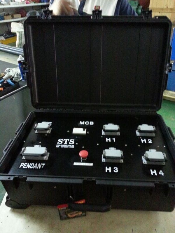 These four hoists feature a special architecture with selective mode control, allowing individual or synchronized operation. In synchronized mode, the roof frame lifts simultaneously by all four hoists, resulting in cost savings through time reduction and minimized installation labor. All electrical controls are integrated into a portable, rugged “Protector Case” designed to withstand harsh environments and resist water.